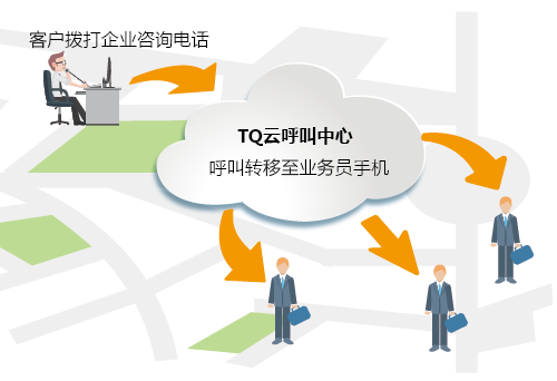 客户拨打企业号码时,进入呼叫中心系统,以便系统进行呼叫转移