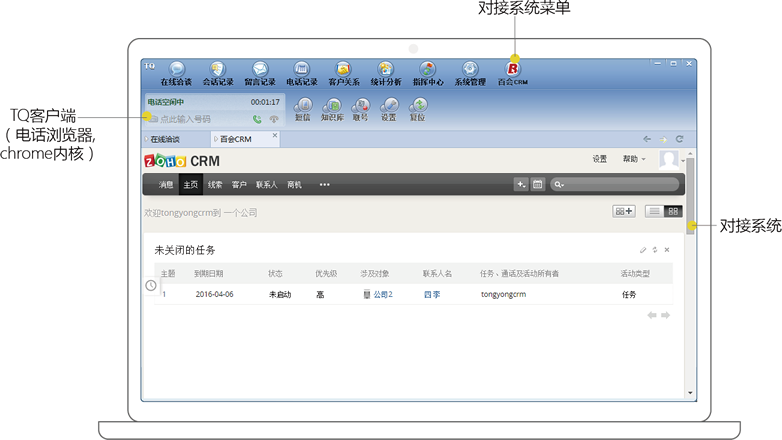 登录TQ客户端同时登录CRM系统,来去电时自动弹出客户信息。