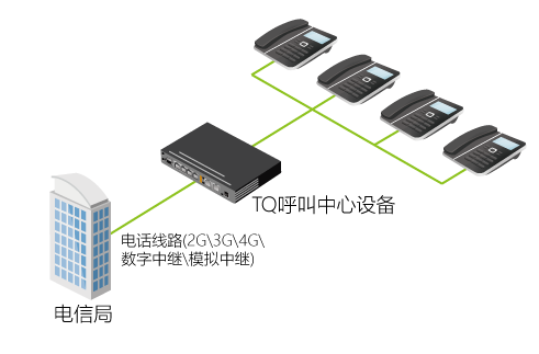 利用呼叫中心电话设备,将企业本地原有电话线路(2G\3G\4G\数字中继\模拟中继)接入呼叫中心。话音品质与原来一样,不受网络影响。